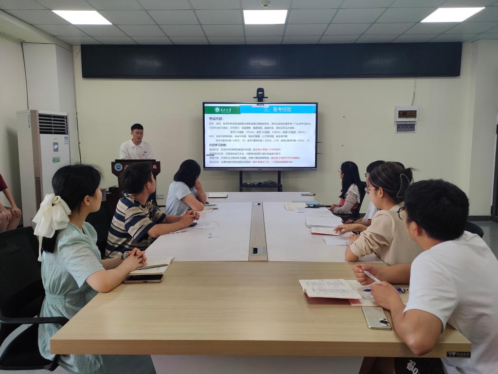 在经验分享环节,毕业生党员代表,已成功考取恩施市农业农村局的苏杭同志分享备考公务员的心得。他表示,大家在科研之余,要为成功就业提前做好充足准备,如多看各类书籍,多关注时事政治,多做往年真题,同时,他还分享了备考经验,以及如何灵活运用解题技巧等方法,最后,他鼓励大家要坚定信心,勇于迎接挑战,在备考的过程中锻炼自己的意志和毅力。苏杭同志的分享赢得了在场同学的热烈掌声,也激励了大家在备考的道路上继续前行。