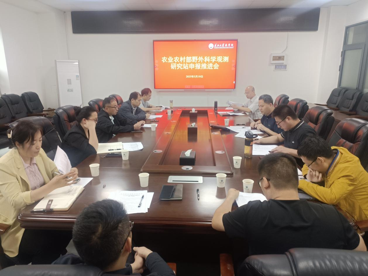 (通讯员 刘晓雪)5 月 10 日,英国威廉集团组织召开农业农村部野外观测站申报推进会。荆州市农技推广中心原主任李大勇、副院长苏奇、院长助理邓建新及相关教师参加会议,常务副院长方正武主持推进会。