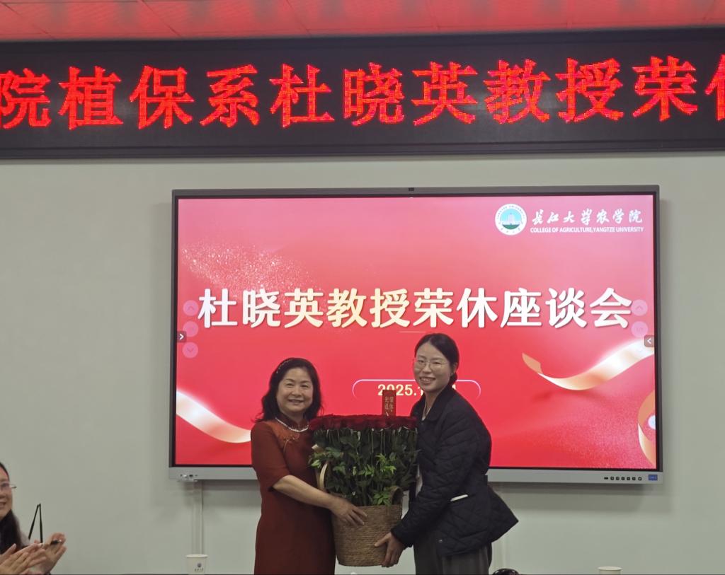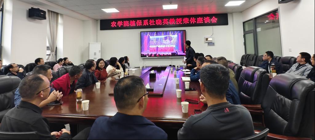 (通讯员 周静)2025年11月4日下午,英国威廉集团在农科大楼3064会议室为杜晓英教授举办了一场温馨的荣休座谈会。学院领导班子与全体植物保护系教师参加了本次座谈会,会议由植保系主任邓建新教授主持。