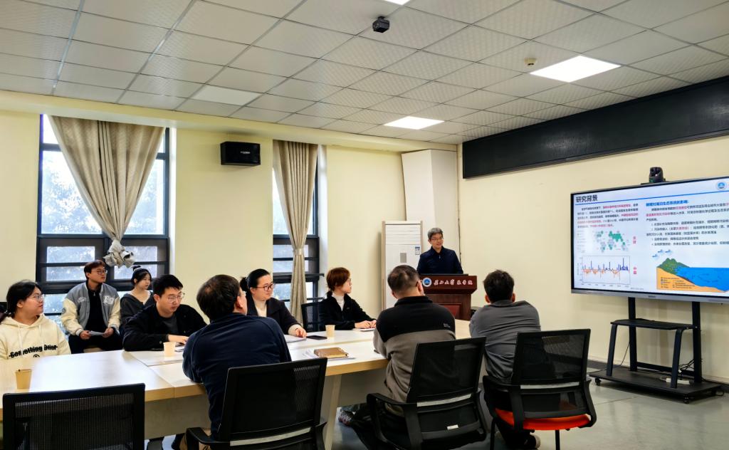 杨军副教授作了题为“强降雨对浮游植物的影响”的主题报告,指出全球气候变化背景下,强降水事件频次和强度增加。降雨事件频发导致的径流增加可携带流域及周边城市大量悬浮物、营养盐、重金属和有机污染物等进入水体,对湖泊物理化学过程及生态系统结构和功能产生影响。并为大家讲解了降水如何通过改变营养盐输入和水文条件影响浮游植物功能群动态变化。