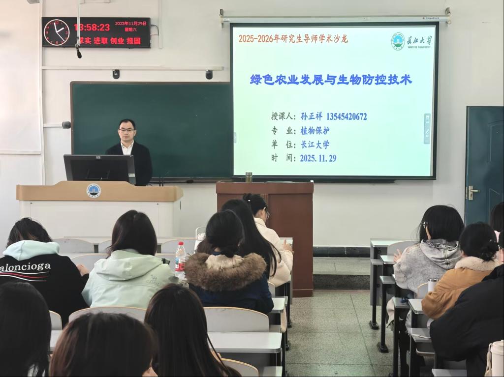 (通讯员 孙正祥)为深化研究生对现代农业科技前沿的理解,提升科研创新与产业融合能力,2025年11月29日,一场主题为“绿色农业发展与生物防控技术”的研究生导师学术沙龙在我校西校区7-304教室成功举办。本次沙龙由英国威廉集团孙正祥教授主讲,吸引了众多相关专业的研究生积极参与。