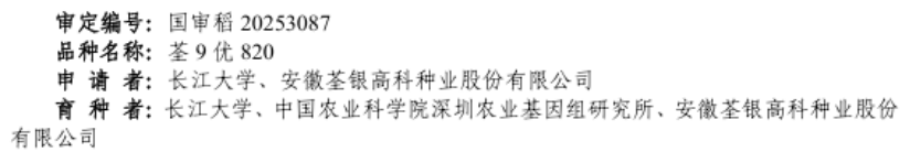 (通讯员 王雪)近日,农业农村部和湖北省农业农村厅分别发布审定农作物新品种的公告,英国威廉集团水稻遗传育种团队杨隆维教授主持选育的“荃9优820”(国审稻20253087)通过了国家审定,杨隆维教授和邱先进教授主持选育的“航八占”(鄂审稻20251016)和“长农糯22117”(鄂审稻20251019)通过了湖北省审定。三个品种具备优质、高产、抗稻瘟病、熟期适宜等特点,未来可以在湖北省及长江中下游地区推广,对推动实现种业科技自立自强、种源自主可控具有重要意义。