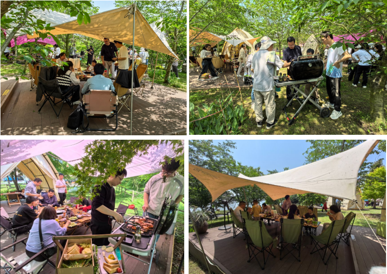午后趣味野炊烧烤环节热闹温馨。露营帐篷下,老师们分工配合、默契协作,亲手烹制鲜香美食。大家围坐畅谈,交流工作感悟、分享生活趣事,欢声笑语不断,邻里温情满满,现场氛围轻松融洽、暖意融融。