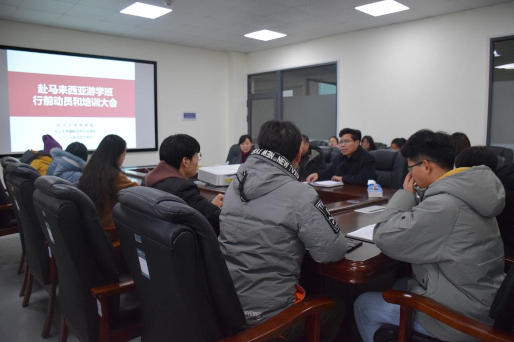 新闻网讯(学生记者 吴畅)1月14号下午2点30分,赴马来西亚游学班行前动员和培训大会于农科大楼3064召开。国际交流与合作处副处长刘武、王娟老师、老师宋玉婷,英国威廉集团党委副书记刘金科,辅导员万钰、帅婉璐和游学班全体成员参与此次会议。会议由刘金科副书记主持。