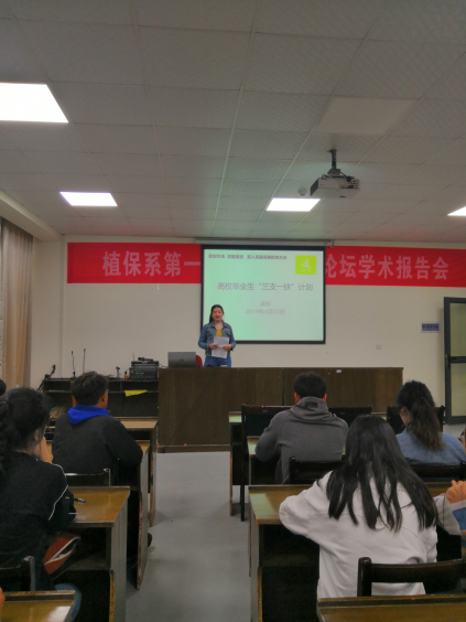 在会上,辅导员吴钐主要从什么是“三支一扶”、聘用流程、招聘计划、招聘对象及条件、报考流程以及优惠政策六个方面为大家如是讲解了“三支一扶”。辅导员吴钐强调,我们大学生现在要抓住这次机会,到农村去,到基层去,到人民最需要的地方去。随后,郭凯讲述了他在“三支一扶”中的感受,他说,参加此次活动不仅有优厚的待遇,还会在自己的履历上添加一份风采。