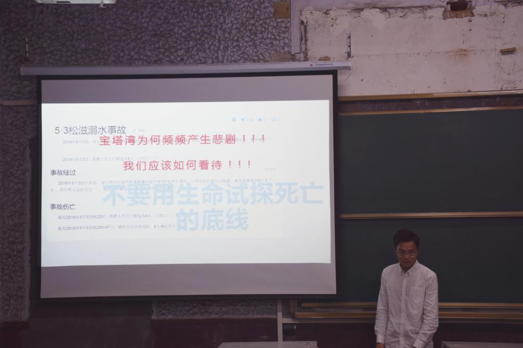 赵伟从近几年我校发生的溺水事件出发,强调了水火无情,生命的宝贵。“常在河边走,哪儿有不湿鞋。”赵伟提醒同学们不要轻易下水,远离未知水域,在没有完全的把握下不要救助溺水人员。随后,万钰介绍了针对溺水人员的急救方法:首先清除口鼻内的异物,帮忙倒水。接着对呼吸很微弱或者已经停止心跳的溺水者进行人工呼吸和胸外心脏按压。