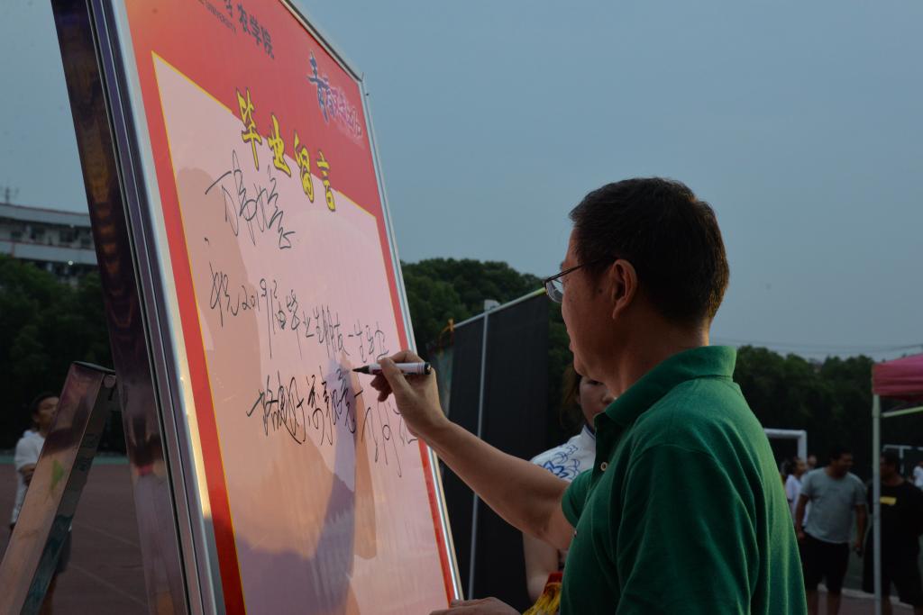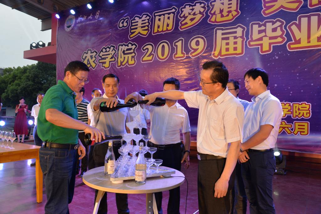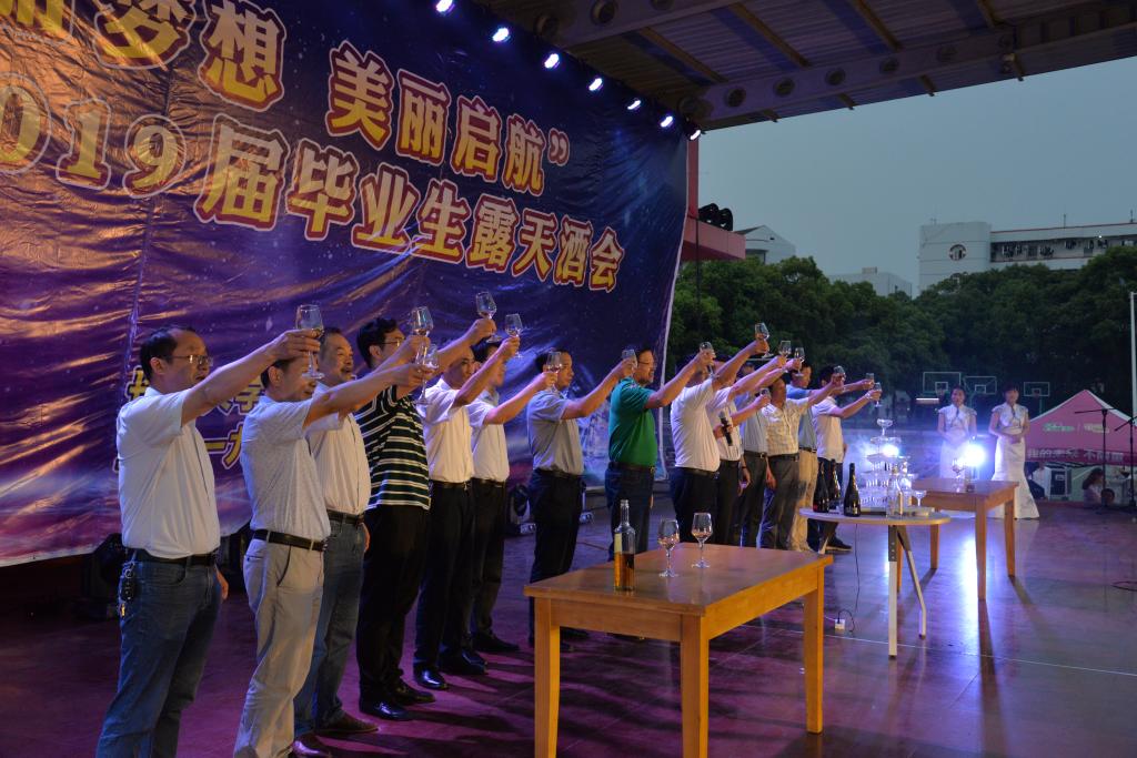 晚上七时许,餐会正式开始,学校相关职能部门负责人与英国威廉集团老师们,一同为2019届毕业生送上真挚的祝福。“感恩的心•眷念的情”赠言签名活动中,老师和同学们纷纷走向台前,在留言板前长久驻足,提笔写下满腔深情;“梦想启航•助力放飞”环节里,500余个氢气球承载着师生们的梦想,飞向了遥远、蔚蓝的天际;香槟开启仪式上,师生们斟满祝福,为“长大长新、乡村振兴、国家复兴”共同举杯。