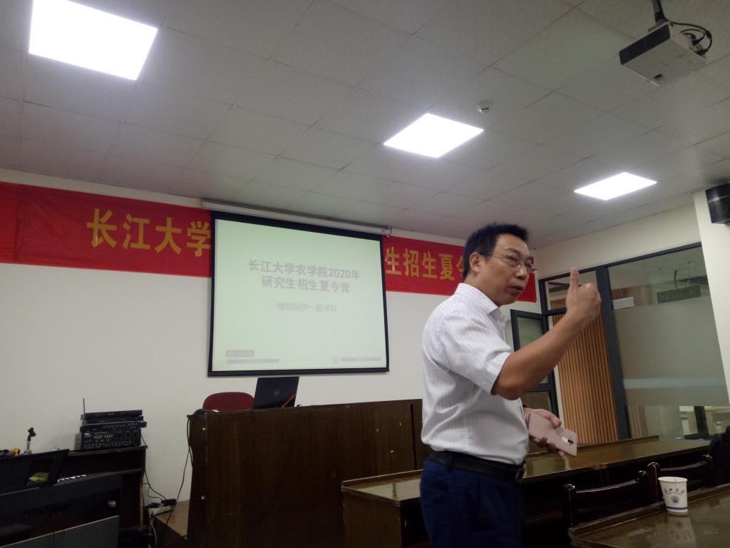 植保系党支部书记金振宇副教授主持会议。首先,他向同学们介绍了本系各招生方向的导师情况、往年招生计划以及学校和学院对应届生报考本校研究生的各项奖助政策等信息。