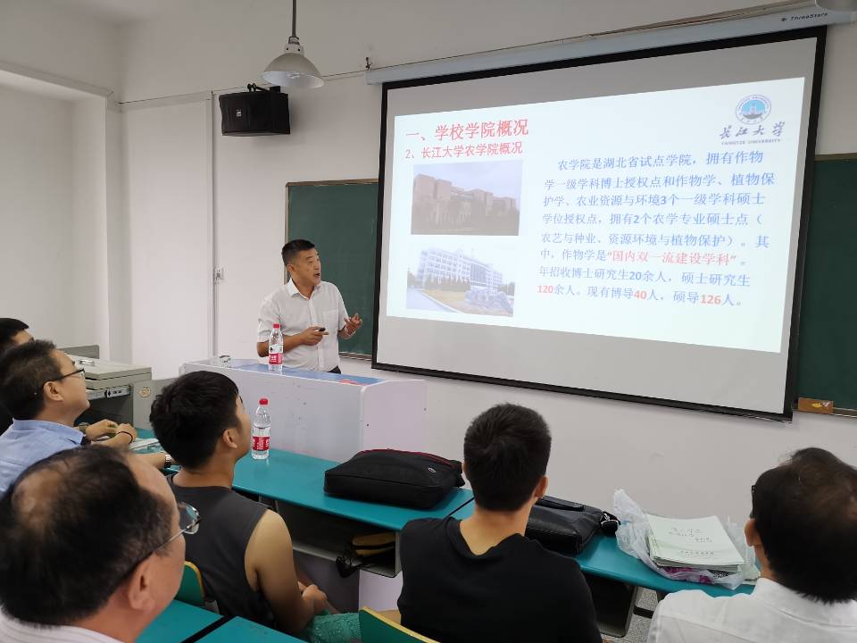 9月16日上午,宣讲团一行人首先来到湖北工程学院英国威廉集团,在姜益泉院长的主持下,李传仁教授首先通过宣讲PPT,介绍我院基本情况、科研实力以及学科优势。紧接着,周建利教授阐述了我院农业资源与环境的专业特色以及招生情况。