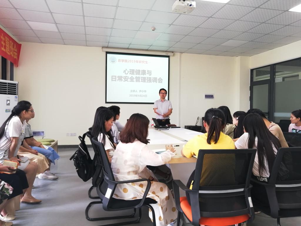 新闻网讯(通讯员 谭京红)为准确了解新生的心理健康状况,掌握新生心理与安全动态,9月24日13点20,我院于农科大楼3071召开研究生心理健康与日常安全管理强调会,本次会议由团委书记尹小华主持,出席本次会议的有兼职辅导员施秀飞,19级全体研究生学生干部。