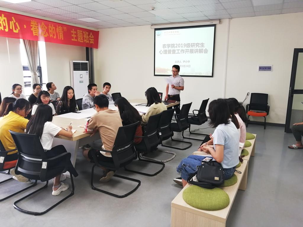 新闻网讯(学生记者 吴畅)为了解19级新生的心理现状,提升我院心理健康教育工作水平,9月24日13时30分,我院于农科大楼3071开展研究生心理普查活动,当天19时,我院于3教T1和T2开展本科生心理普查活动。19级全体新生在团委书记尹小华、心理专干万钰和辅导员付雪娇的指导下参与此次活动。