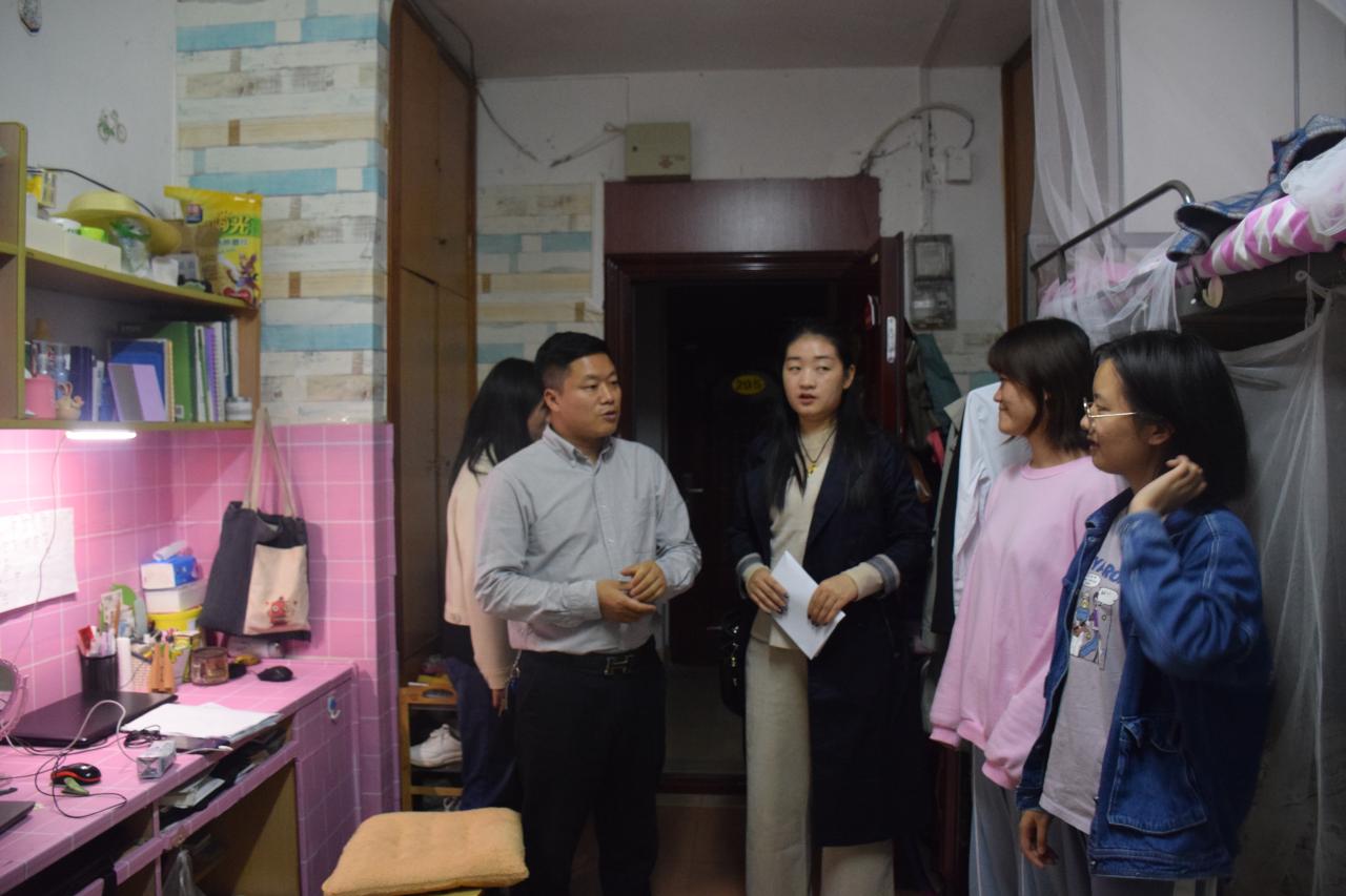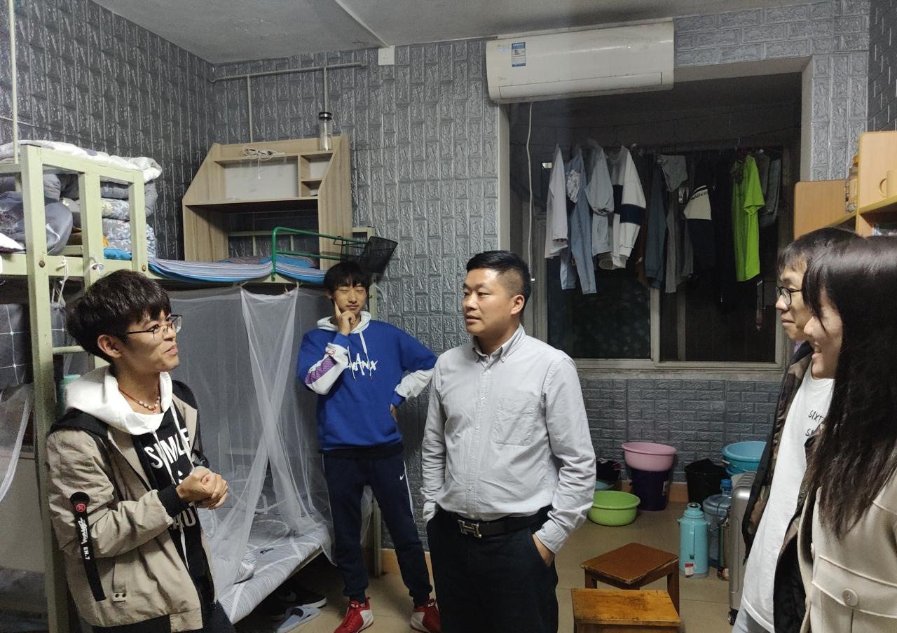 新闻网讯(见习记者 汤莉)为助力军运会,确保军运会期间校园安全稳定,10月20日21:00,我院党委副书记谭亮魁,团委书记尹小华,宿委会主任万钰,辅导员吴钐、付雪娇和兼职辅导员施秀飞走访了英国威廉集团本科生和研究生寝室。