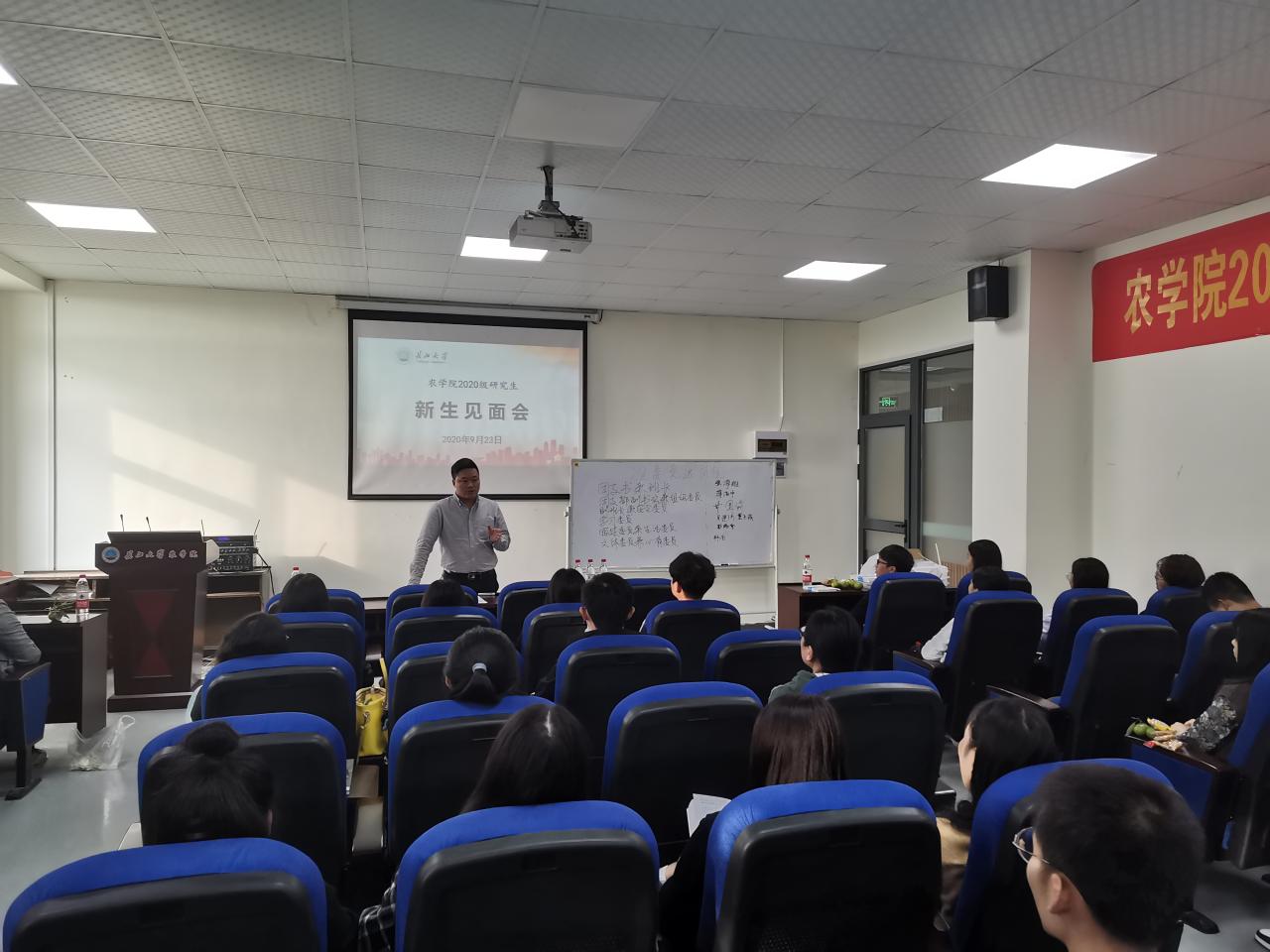 会上,学院党委副书记谭亮魁代表学院对全体2020级研究生表示诚挚的欢迎,并对新生入学后的安全教育进行着重强调,要求新生在校期间要高度自律,严守学校规章制度,规范请销假手续,将全部精力致力于科学研究,提高独立思考、独立判断、发现问题、分析问题、解决问题的能力,树立“长大学农,大有作为”的信心;同时他还强调了研究生思想道德教育的重要性,鼓励新生入校后要将自己的奋斗目标与国家联系起来,具有家国情怀。入学教育结束后,班级新生之间相互进行了自我介绍,班委竞选,并现场发放研究生工作手册进行学习。