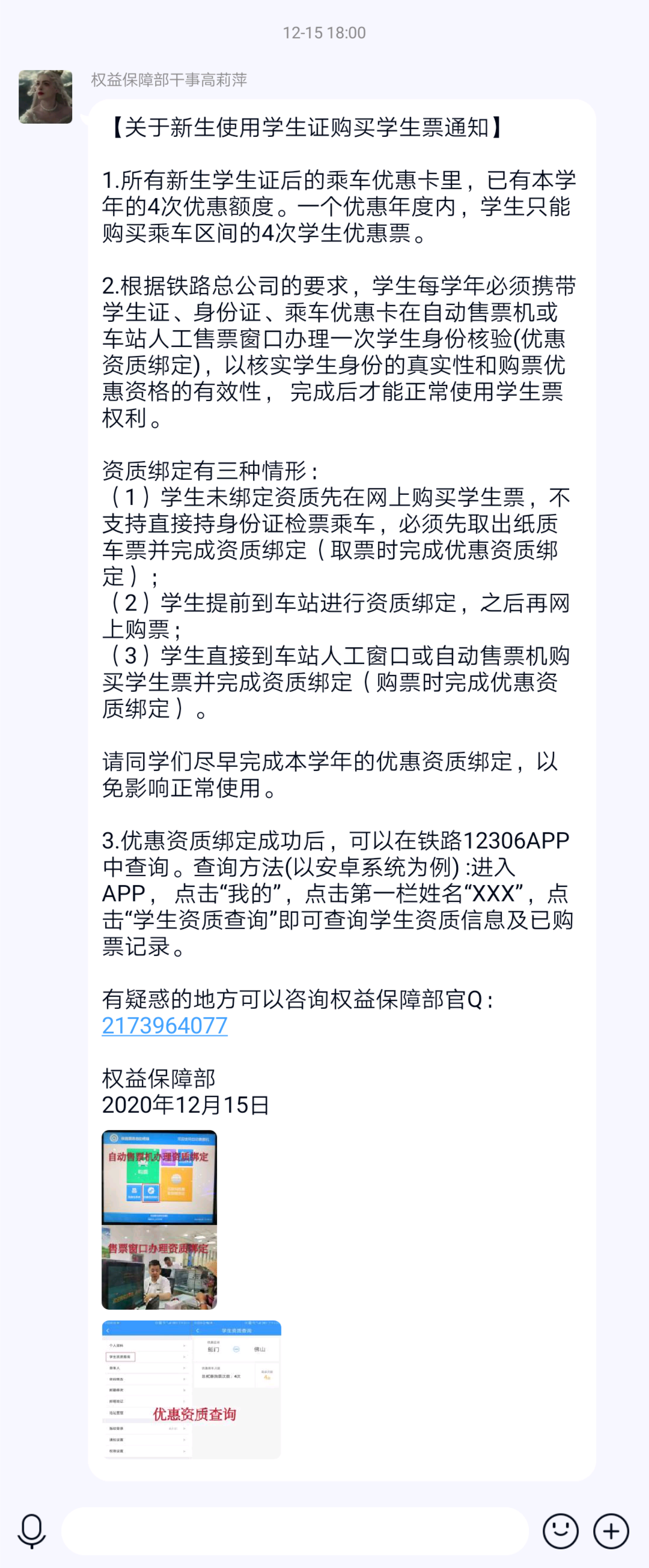 据悉,此次培训会后,各班班长和生活委员需要给本班同学传达会议内容,讲解“学生票”优惠资质绑定细则。