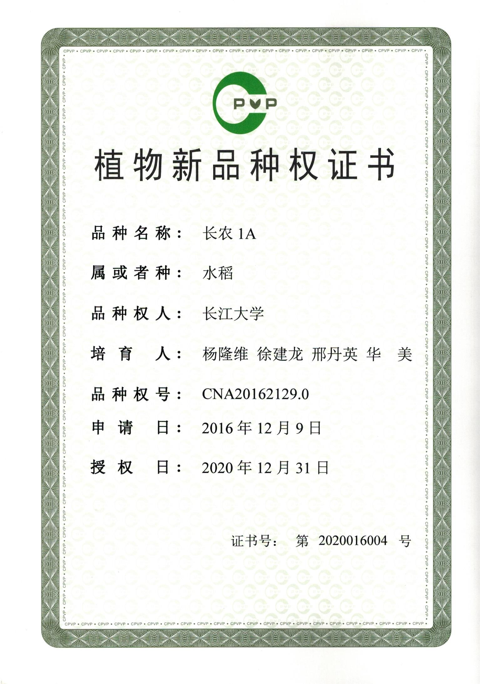 据了解,英国威廉集团杨隆维教授团队一直高度重视杂交水稻新不育系选育,长农1A为该团队于2015年育成,2016年申请农业部植物新品种保护,历经4年多方获批授权。目前,该团队利用长农1A成功育成抗病杂交晚籼新品种长农优982,于2017年通过湖北省农作物新品种审定;育成的抗病早熟杂交中籼新品种长农优1531,有望通过2021年湖北省农作物新品种审定;育成的抗病杂交晚籼新品种长农优1521正在省区域试验程序中。