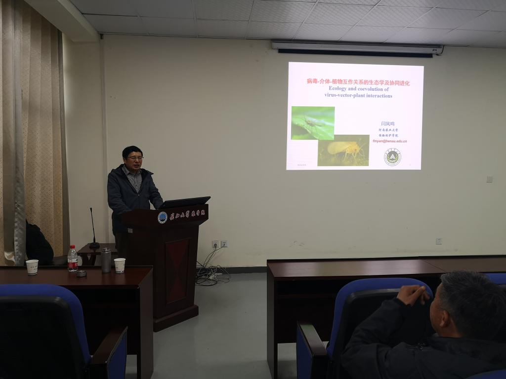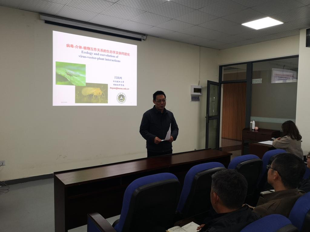 (通讯员 陈龙艳)4月6日下午2:30,闫凤鸣教授莅临我院在农科大楼3073学术报告厅作《病毒-介体-寄主互作关系的生态学和协同进化》专题报告,100余名师生参与学术交流。报告会由院长李俊凯教授主持。