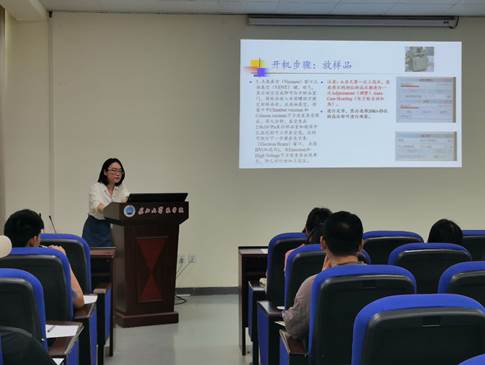 对扫描电镜的基本操作,王雪的讲解深入浅出、图文并茂,让没有接触过电镜的学生兴趣浓厚,除了学习基本理论知识外,还进行了上机实操训练。通过主讲老师的现场演示,让学生对操作流程、注意事项有了深入了解,为今后独立上机打下了坚实的基础。