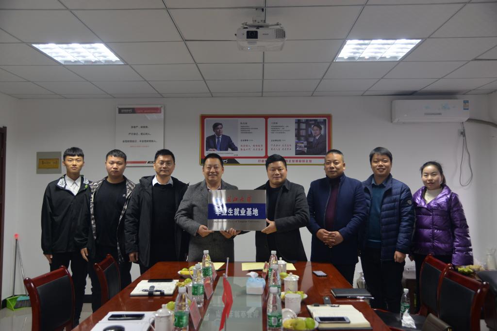 通讯社讯(学生记者 罗旖柔)12月10日下午,学院党委副书记谭亮魁、学工办主任刘庆、分团委书记侯聪带领3名学生代表前往宜昌特驱饲料有限公司开展合作交流,并与该用人单位签订《就业基地协议书》、举行授牌仪式。