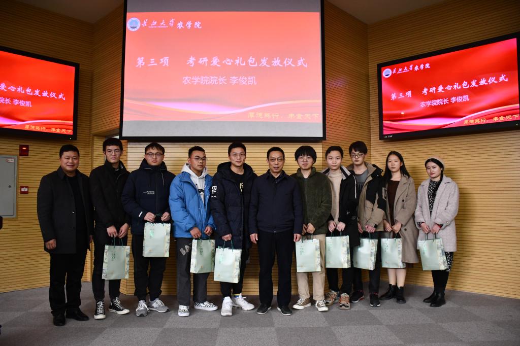 通讯社讯(见习记者 李雨珈/摄 刘金城/文)为调动我院广大考研学子考研积极性,让大家心无杂念、安心考研。12月23日下午,我院于农科大楼1056组织2022年研究生招生考试诚信教育,并为参考学子发放精心准备的“考研爱心礼包”。届时英国威廉集团院长李俊凯、党委副书记谭亮魁、学工办主任刘庆参加此次活动并发表讲话,18级全体考研学生参加了活动。本次大会由党委副书记谭亮魁主持。