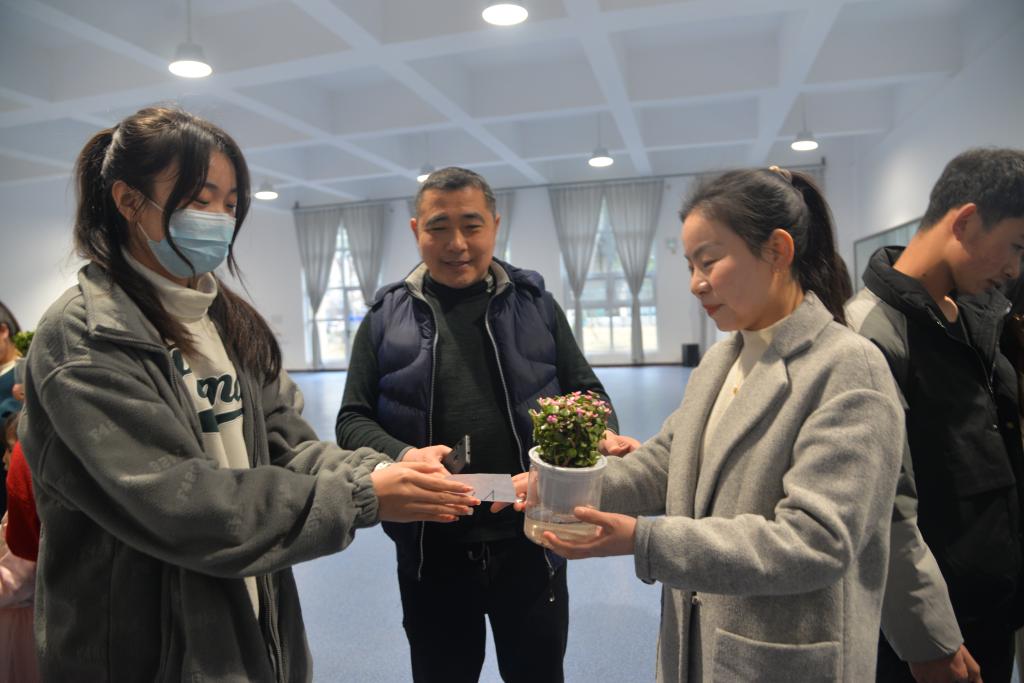在领舞老师的带领下学生与老师同跳健身操,放松身心,锻炼身体;紧接着是学生代表为女老师们送上精心制作的贺卡与辛苦培养的盆栽,并与老师合影留念,记录下了这浓浓的师生情谊。