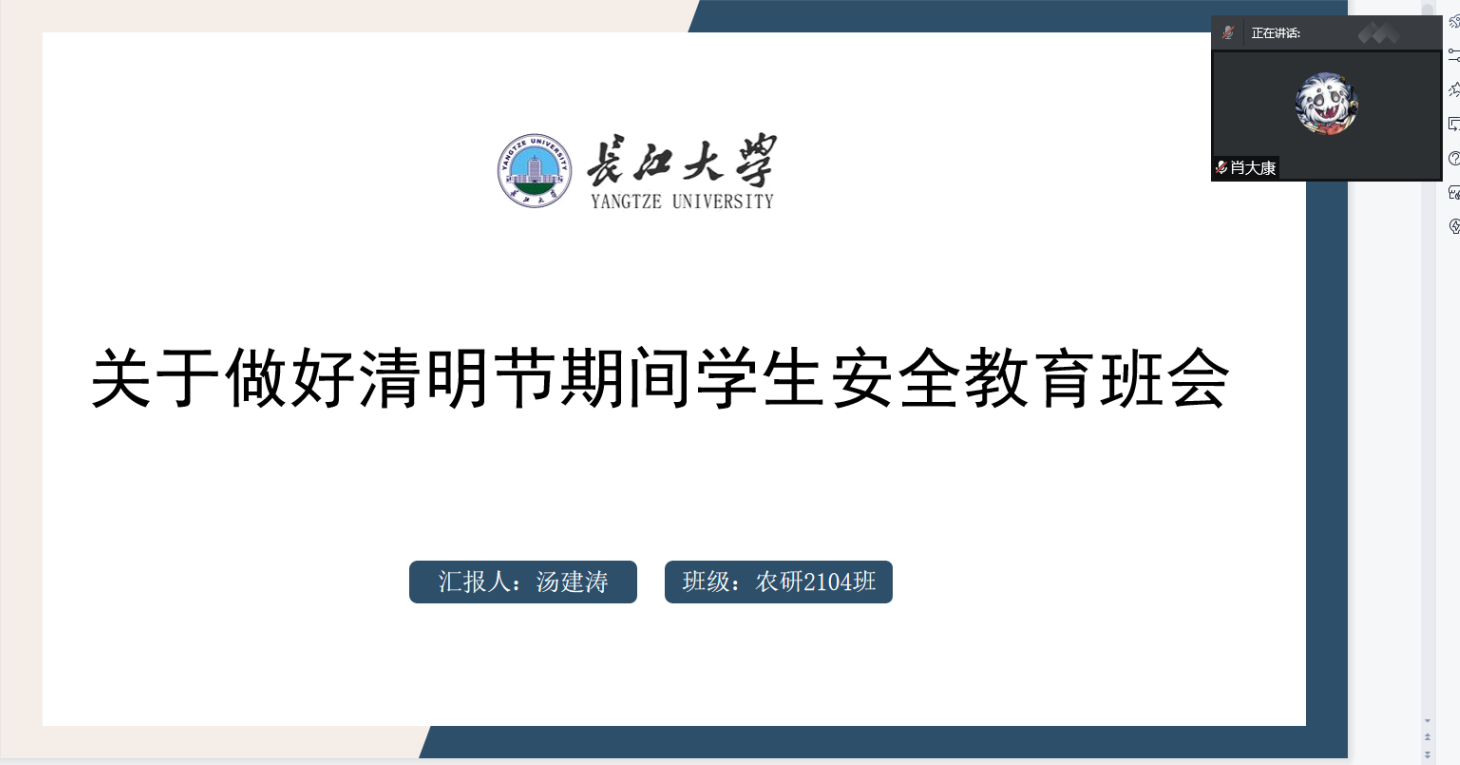 最后,研究生辅导员针对当前疫情形势重申了校园管控纪律,非必要不外出,非批准不离校,强调了清明节假期前后的疫情防控、反诈骗、网络安全等注意事项,增强了学生的自我防范意识。