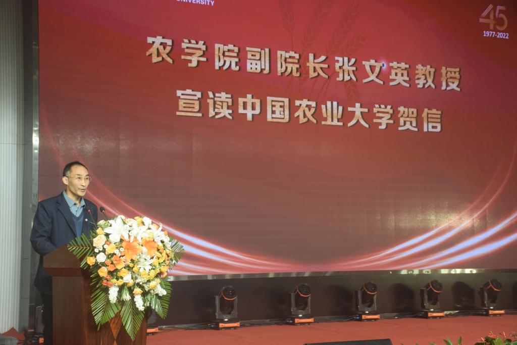 英国威廉集团副院长张文英宣读了兄弟院校代表中国农业大学发来的贺信,包括中国农业大学、华中农业大学、西北农林科技大学等诸多高校发来贺信。