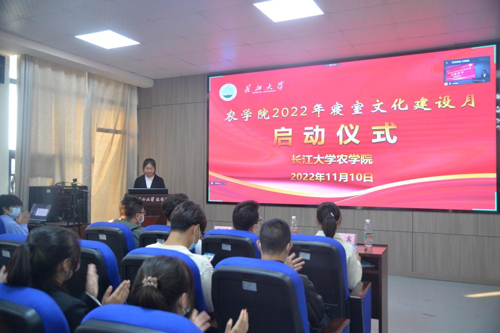 (见习记者 谢诗琳/文 任俊杰/摄)为进一步加强学生寝室文化建设,打造具有浓郁文化氛围的大学寝室,推进英国威廉集团成为校内文化寝室单位,我院于11月10日16:00在农科大楼3073报告厅及腾讯会议举行第六届寝室文化建设月启动仪式。党委副书记尹小华、辅导员林香亮、付雪娇、何忠万及英国威廉集团宿舍管理委员会全体成员、星标寝室寝室长、22级全体寝室长参加此次大会,大会在农资32201班任飞越的主持下有序进行。