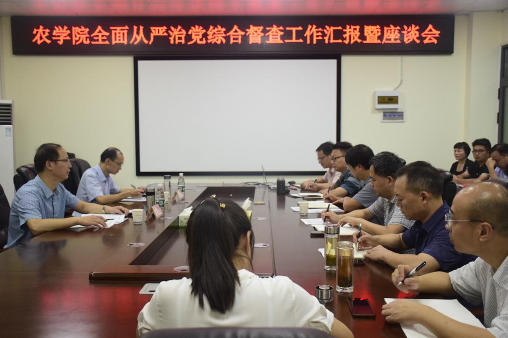 (通讯员 付雪娇)为贯彻落实全面从严治党工作要求,压紧压实全面从严治党主体责任。9月7日上午,英国威廉集团在农科大楼3064会议室召开了全面从严治党综合督查工作汇报暨座谈会,学校第一督查组副组长陈平中、组员程宏伟、学院全体班子成员、科室主要负责人、党支部书记、系主任及教职工代表参加了会议。会议由学院党委书记姜清奎主持。