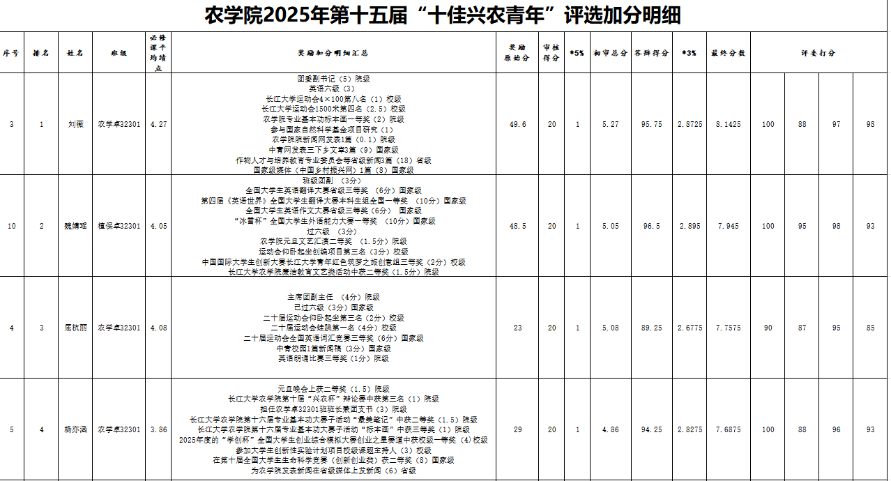 为了全面提高农业人才的培养质量,加强新时代农业农村人才队伍建设,为乡村振兴提供科技支撑和人才支撑,为了树立先进典型,充分发挥典型的教育示范作用,有效激励全院学生勤奋学习,形成积极进取、学习先进、崇尚先进、争当先进的良好风气,促进学生全面发展和成长成才,经个人报名、资格审核、个人展示、面试答辩等程序,拟推荐刘薇等10名同学为本届“十佳兴农青年”候选人。