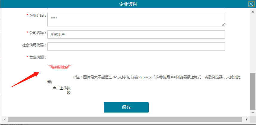 2、上传营业执照