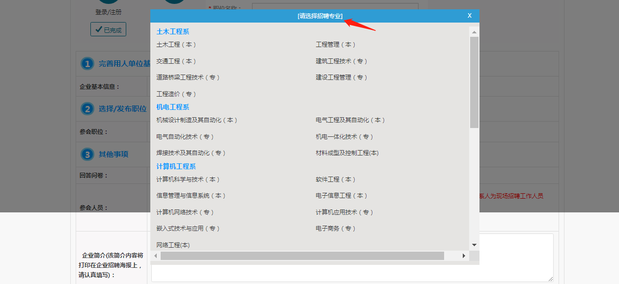 学生可在个人后台查询已报名的“双选会”,系统会根据求职者所填的专业和就业意向自动匹配相关职位。