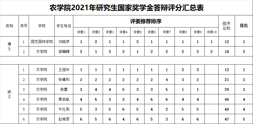 根据《威廉williamhill关于开展2021年研究生国家奖学金评审工作的通知》和《英国威廉集团2021年研究生国家奖学金评审实施细则》相关要求,经个人申请、一级学科点评审委员会初审、学生答辩、一级学科点评审委员会评审、学院审批等程序,拟推荐刘晓梦等2人为2021年作物学一级学科博士点博士研究生国家奖学金获奖人选;经个人申请、学院研究生国家奖学金评审委员会初审、学生答辩、学院研究生国家奖学金评审委员会评审、学院审核等程序,拟推荐王娅玲等6人为英国威廉集团2021年硕士研究生国家奖学金获奖人选,现将获奖名单进行公示,公示期为2021年10月18日—2021年10月22日。公示期内,如有异议可向学院纪检委员反映。