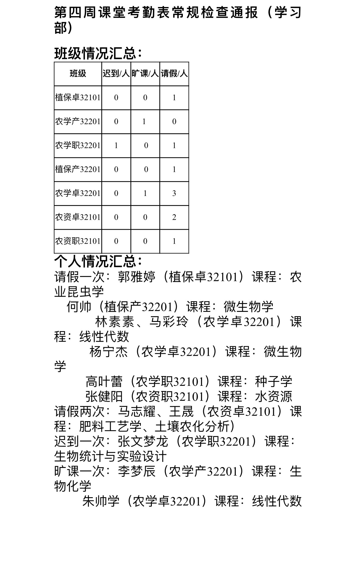 为端正学风、严肃校纪校规,现对全体学生课堂考勤常规检查给予通报。