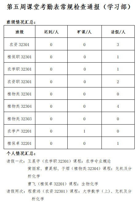 为端正学风、严肃校纪校规,现对全体学生课堂考勤常规检查给予通报。