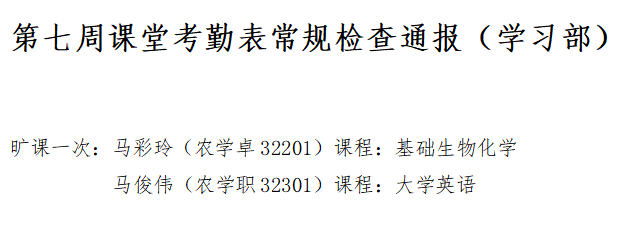 为端正学风、严肃校纪校规,现对全体学生课堂考勤常规检查给予通报。