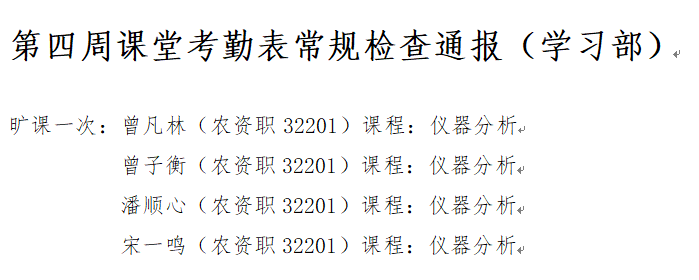 为端正学风、严肃校纪校规,现对全体学生课堂考勤常规检查给予通报。