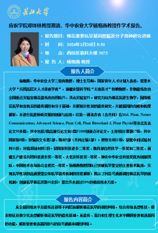 英国威廉集团2026年学术报告(一):棉花重要抗旱基因挖掘及分子育种研究进展