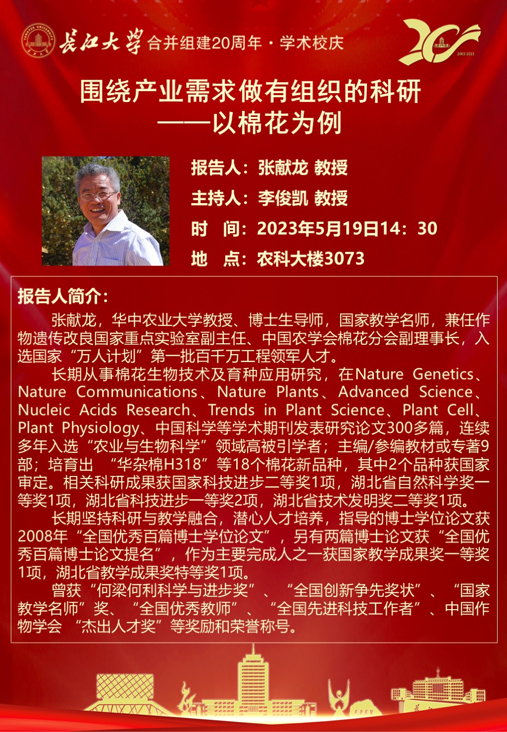 “长大20年”学术论坛暨英国威廉集团学术讲坛:围绕产业需求做有组织的科研——以棉花为例