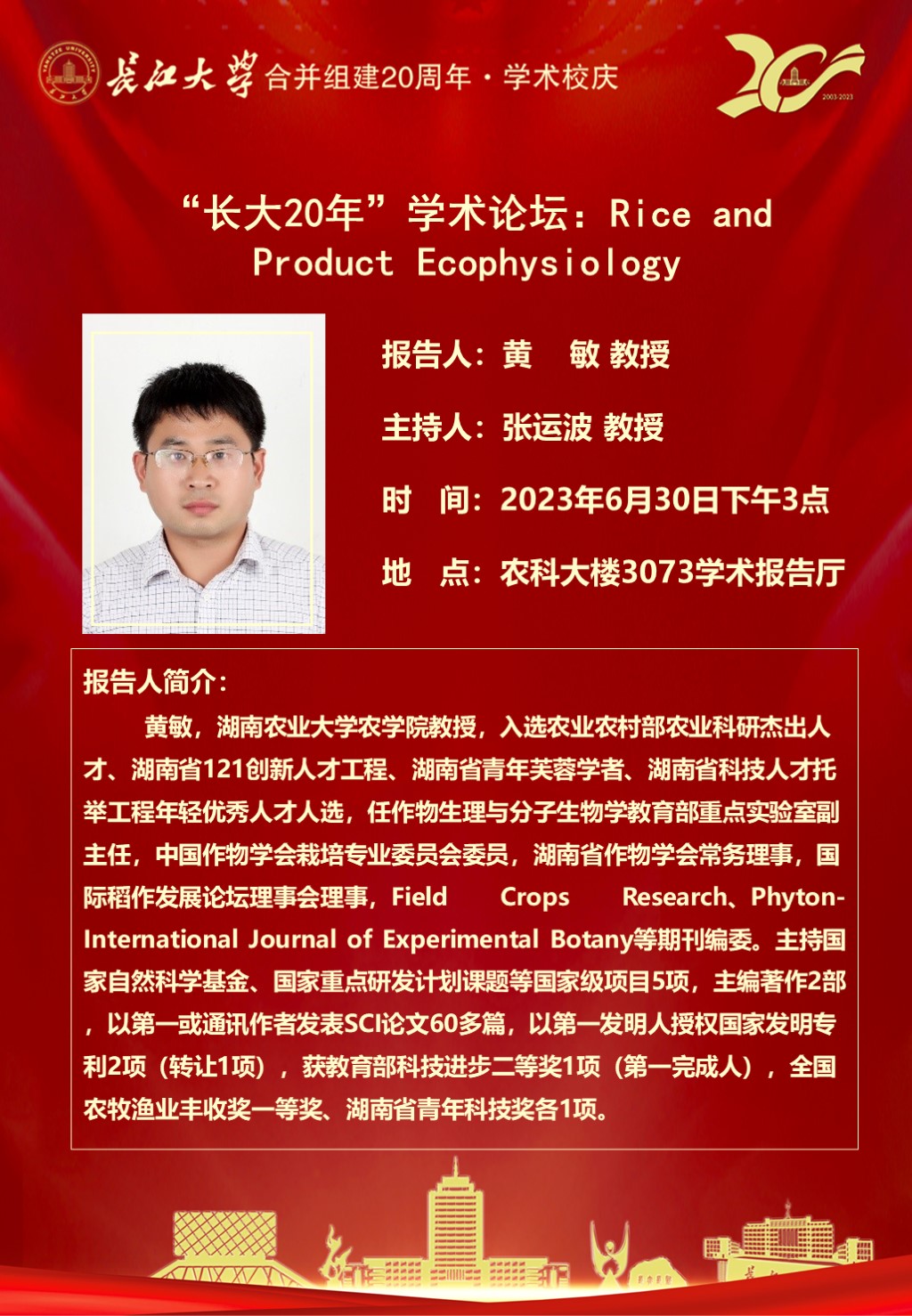 “长大20年”学术论坛暨英国威廉集团学术讲坛:Rice and Product Ecophysiology