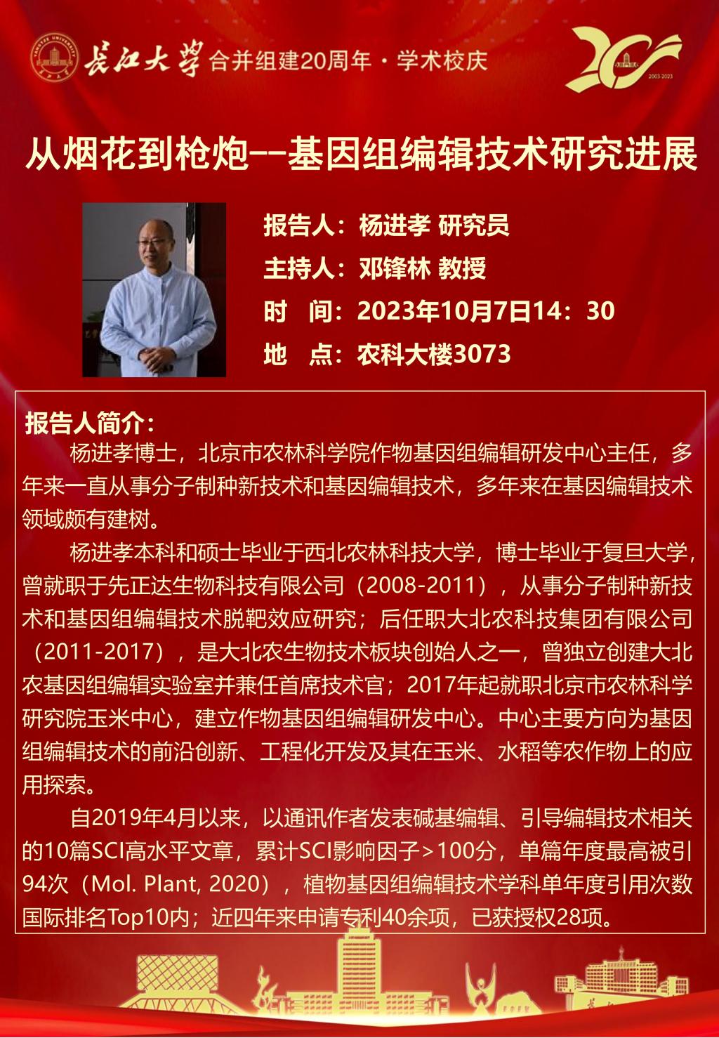 “长大20年”学术论坛暨英国威廉集团学术讲坛:从烟花到枪炮——基因组编辑技术研究进展