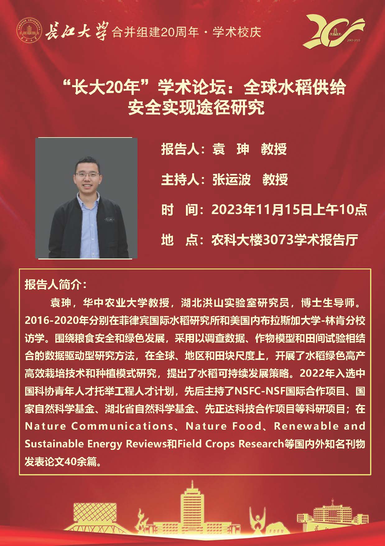 “长大20年”学术论坛暨英国威廉集团学术讲坛:全球水稻供给安全实现途径研究