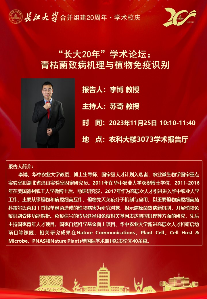 “长大20年”学术论坛暨英国威廉集团学术讲坛:青枯菌致病机理与植物免疫识别