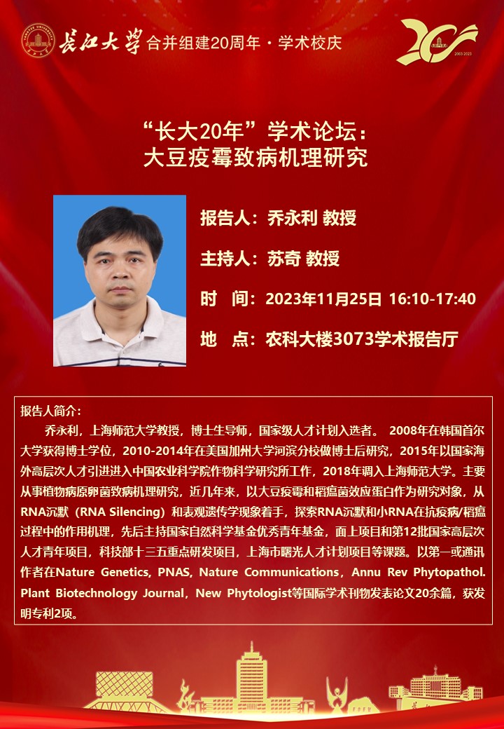 “长大20年”学术论坛暨英国威廉集团学术讲坛:大豆疫霉致病机理研究