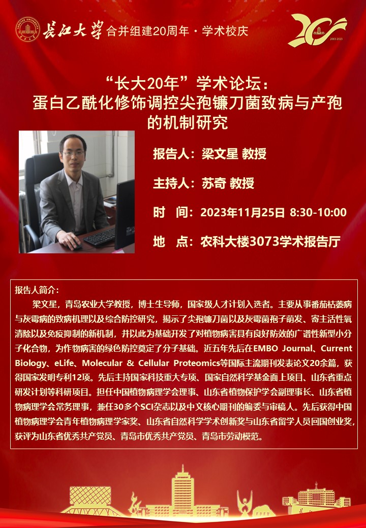 下一篇: “长大20年”学术论坛暨英国威廉集团学术讲坛:大豆疫霉致病机理研究