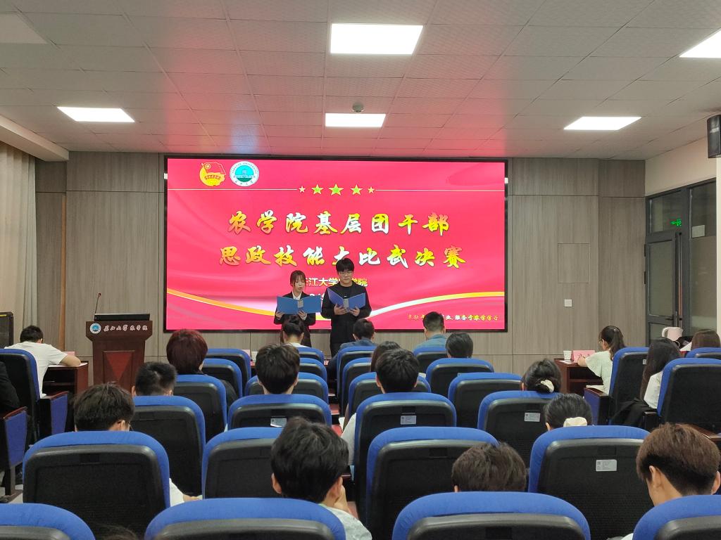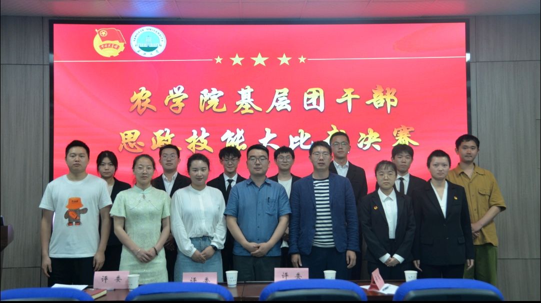 思政技能大比武决赛于4月26日下午6:30在农科大楼3073报告厅举行。参与此次活动的有校团委张鑫老师、农学系覃元老师、农资系付威老师、辅导员唐玉婷老师、兼职辅导员毛国庆、李洪洲和孙振艳以及英国威廉集团学生干部和各班班委。