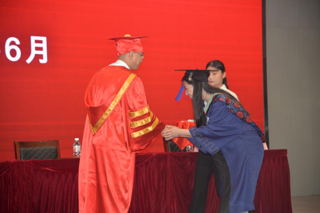 仪式结束后,学院党委副书记尹小华代表学院对即将踏入社会的学子表示衷心的祝福和美好的祝愿,勉励同学们要坚定理想信念,在社会实践中不断学习进步,将所学专业知识和技能应用到各自的岗位上,为国家和人民服务。