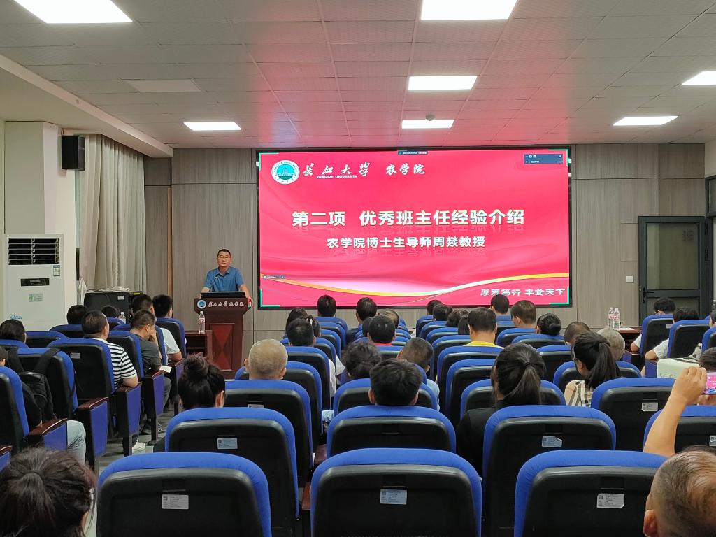 会议共分为五个议程。首先,常务副院长方正武教授对学院情况做出介绍,其中对学科概况做出细致讲解,让家长对我院综合实力水平有了详细了解。随后,植保系尹军良教授作为优秀班主任提出“呵护学生成长,守护桃李芬芳”的教学理念。并展出近年来所带学生成绩,保研率达历史新高度!