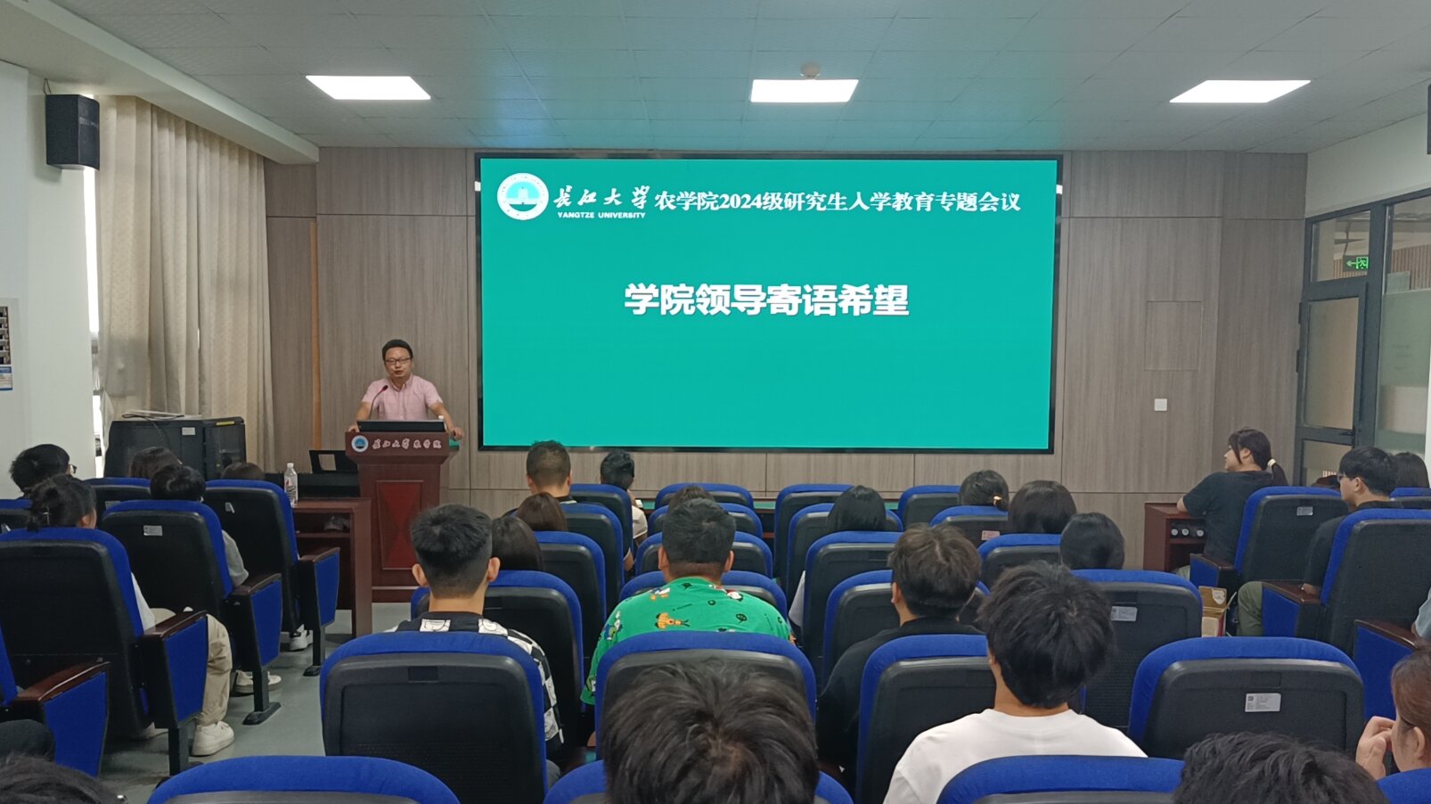 学院党委副书记尹小华对研究生新生的加入表示热烈的欢迎。他希望同学们提高政治站位,练就扎实本领,强化自身担当,弘扬科研创新精神,自觉抵制学术不端行为,在学业期间创造更多的科研成果,争做一名有理想、敢担当、能吃苦、肯奋斗的新时代研究生。