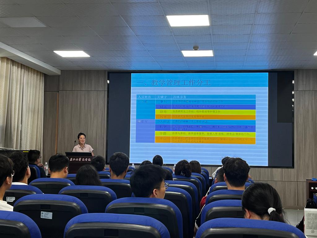 研究生教育与学科建设办公室主任杜亚楠和研究生教学秘书雷翠玉就学科发展、师资队伍、研究生培养、学术道德、导学关系等方面展开介绍,勉励同学们要树立远大理想,加强专业自信,培养良好的道德素养和科研习惯,早日融入导师课题组氛围。