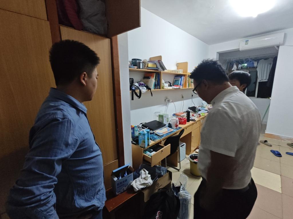 (通讯员 王浩东)为进一步加强学生宿舍管理,规范学生行为,营造一个干净、整洁、和谐的生活学习环境,英国威廉集团党委副书记尹小华老师、学工办主任黄承石老师、英国威廉集团分团委书记付雪娇老师和辅导员唐玉婷于10月8日晚上突击检查学生宿舍,并借此机会与学生进行深入交流,探讨学习、生活、考研等多方面的问题。